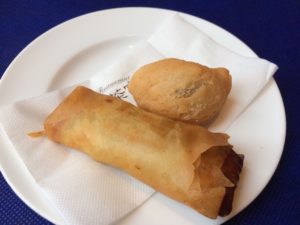 前菜と一緒に運ばれてきたのが揚げ餅と春巻。