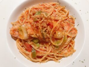 本日のパスタは柔らかめ。